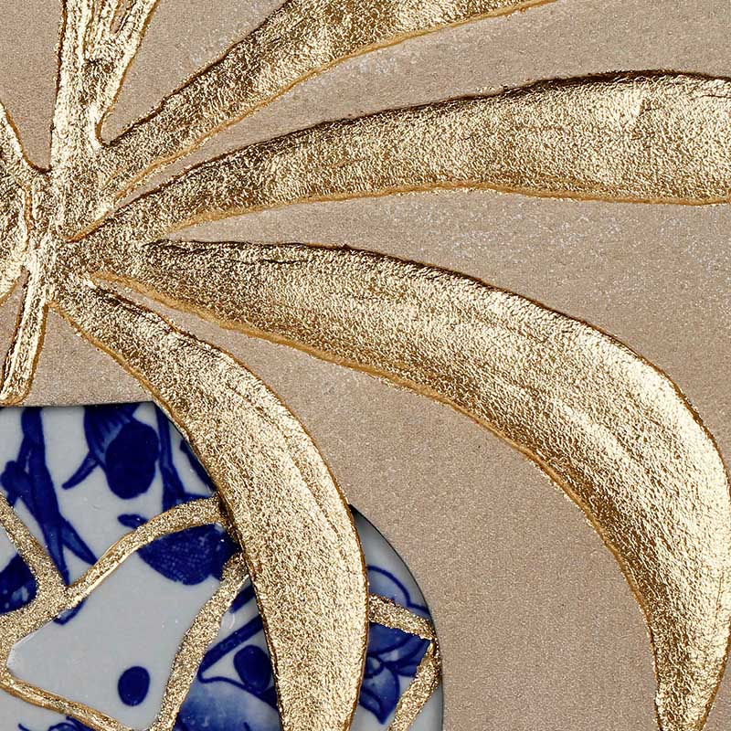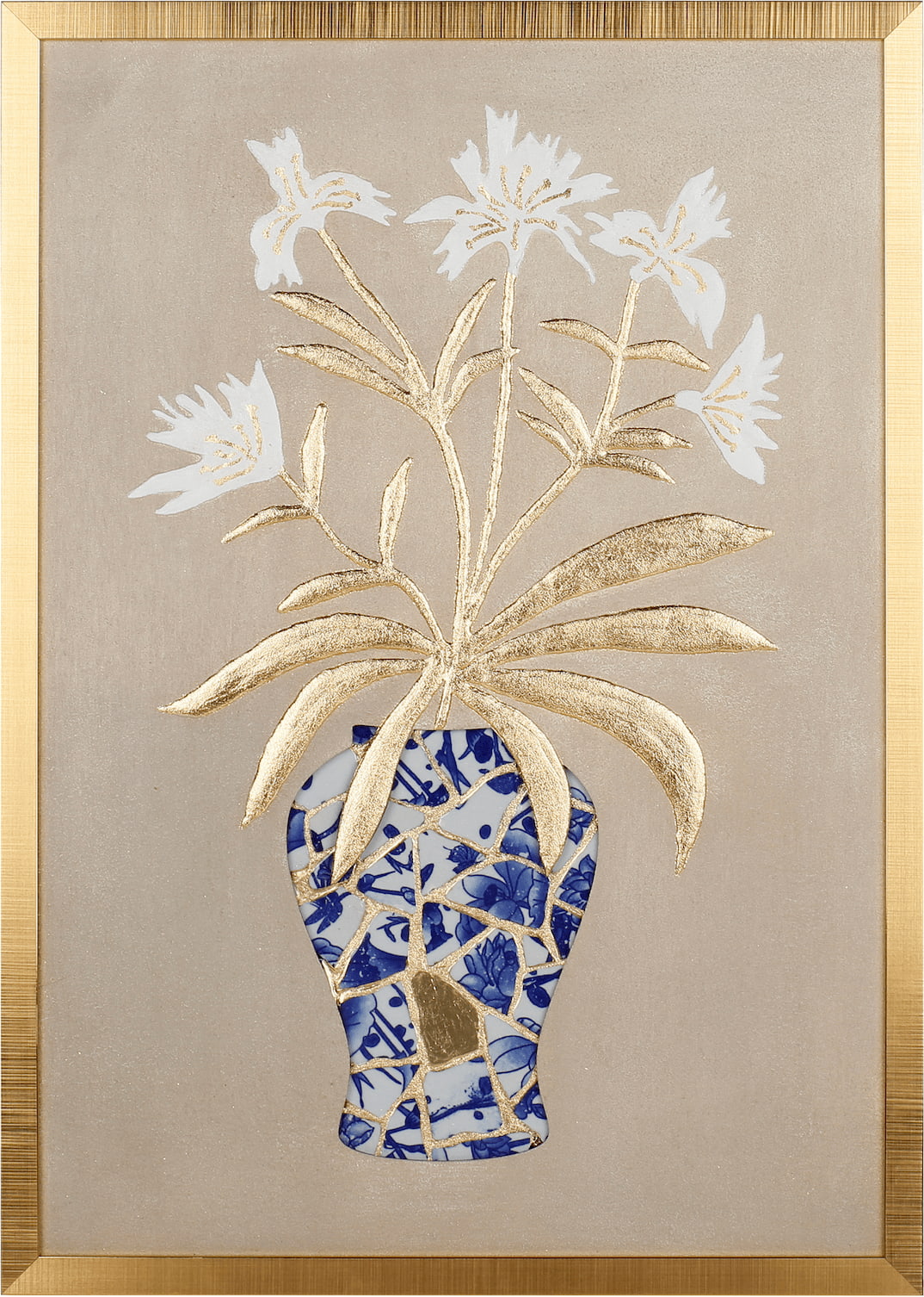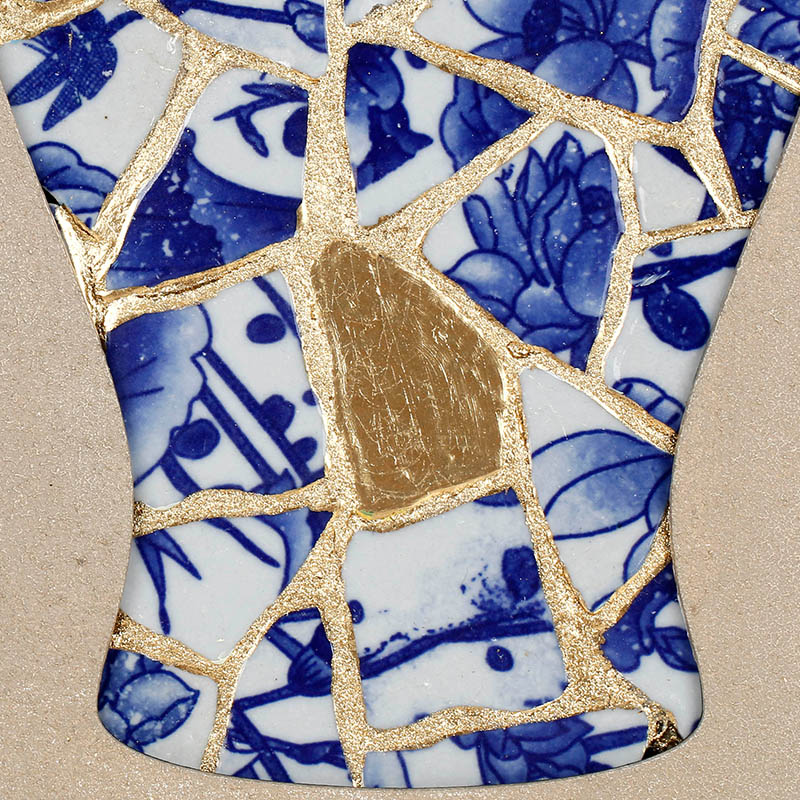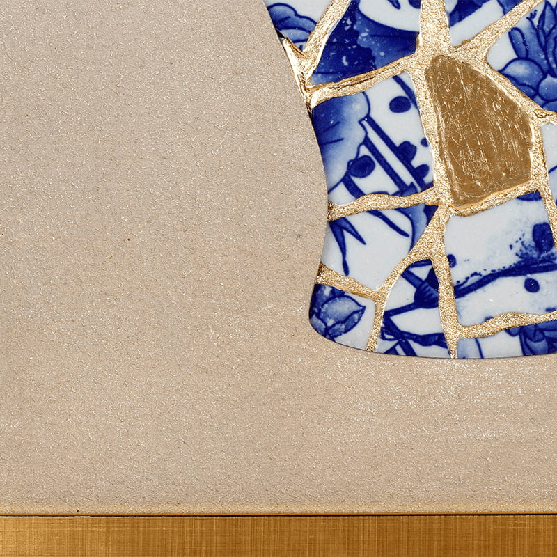 - Product Craftsmanship MDF backboard, sandstone base, hand-painted embossed thick texture, adorned with gold foil, Vase motif crafted from blue and white porcelain fragments The seams are filled with gold foil