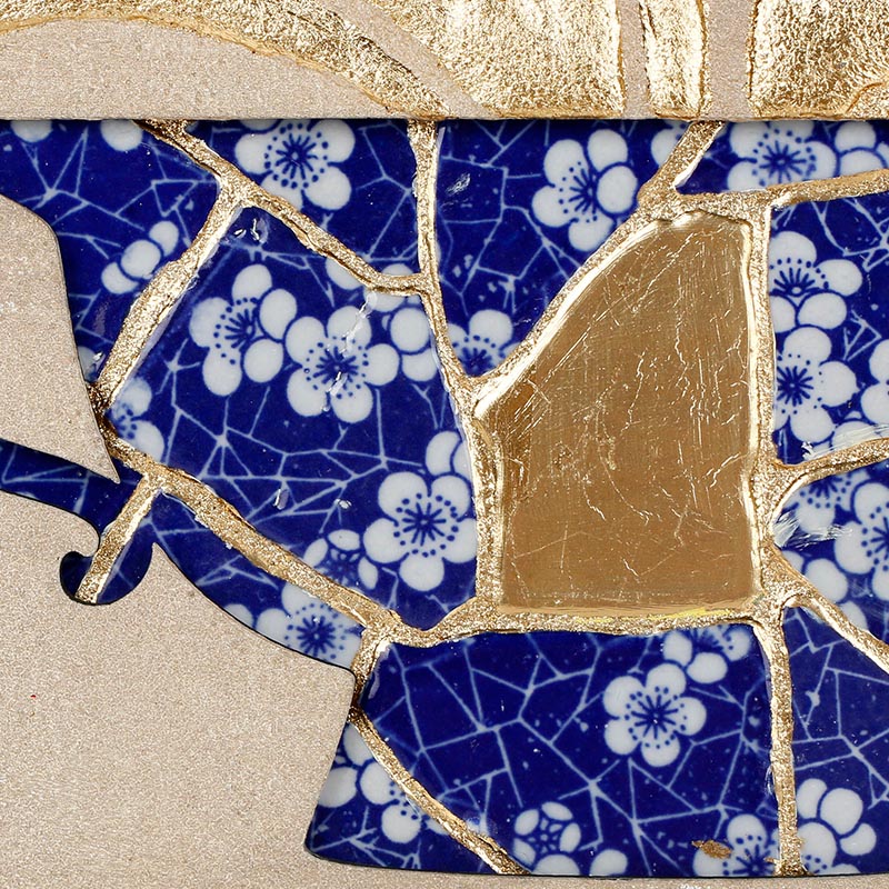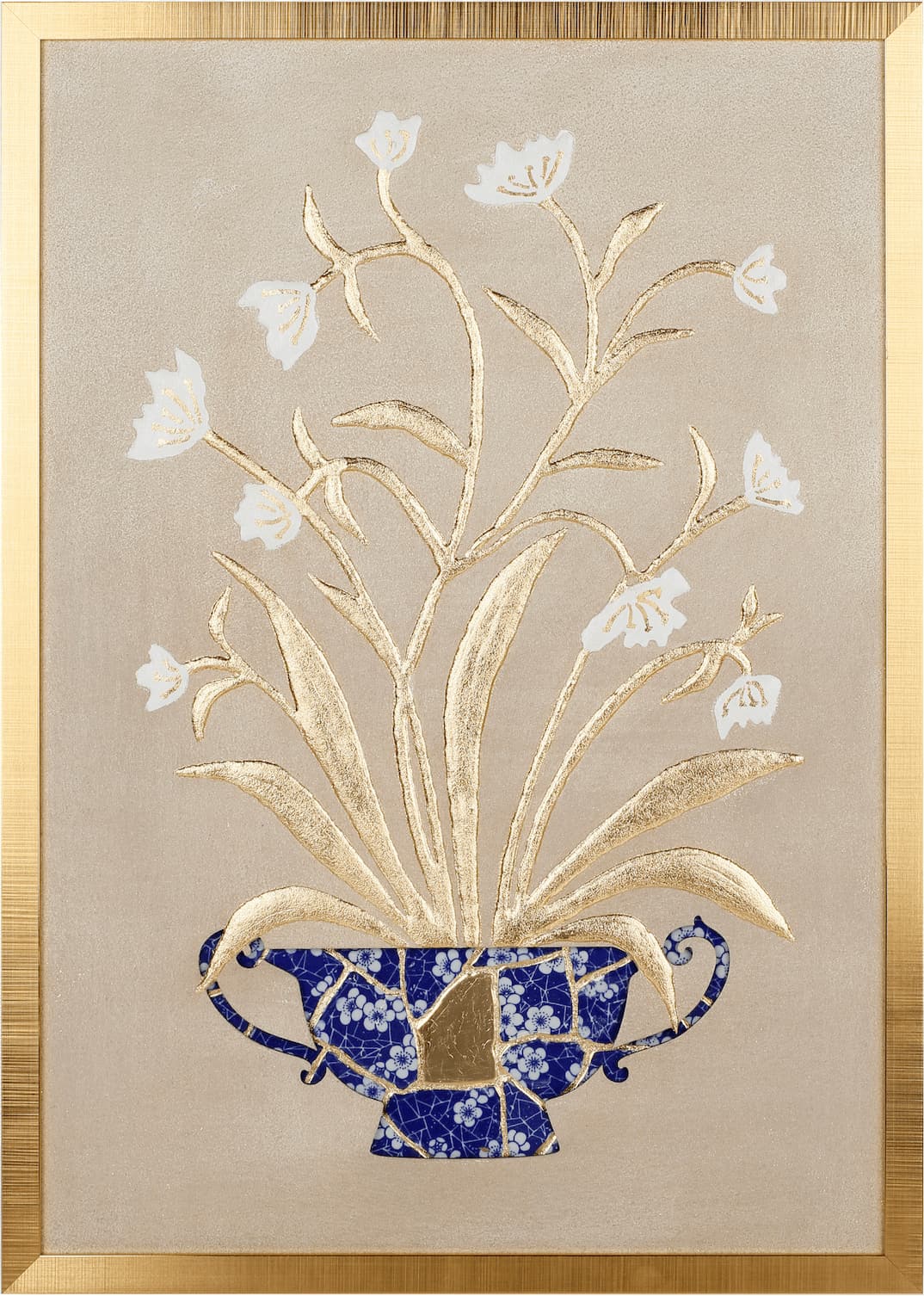 - Product Craftsmanship MDF backboard, sandstone base, hand-painted embossed thick texture, adorned with gold foil, Vase motif crafted from blue and white porcelain fragments The seams are filled with gold foil