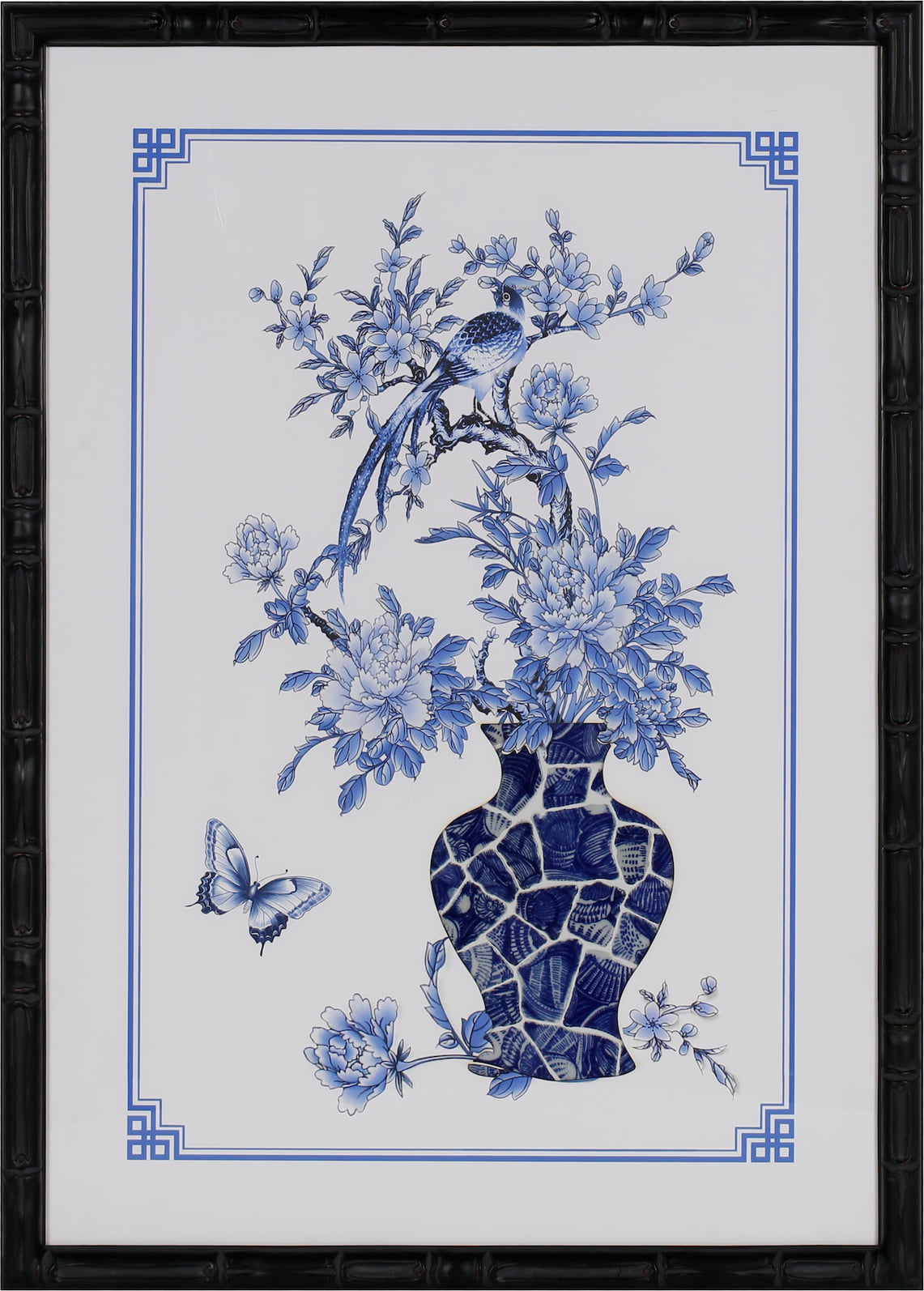 Product craftsmanship: MDF backboard, oil canvas base, pattern with thick hand-painted texture, vase pattern made with spliced blue and white porcelain pieces