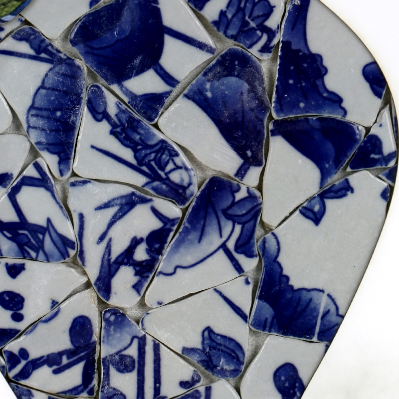 Product craftsmanship: MDF backboard, printed artwork center, vase pattern made with spliced blue and white porcelain pieces