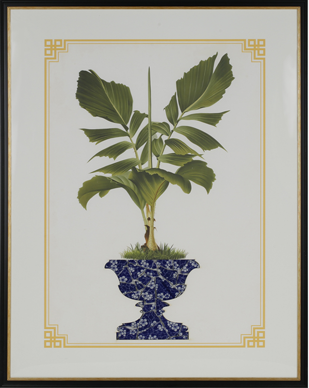 Product craftsmanship: MDF backboard, printed artwork center, flowerpot pattern made with spliced blue and white porcelain pieces