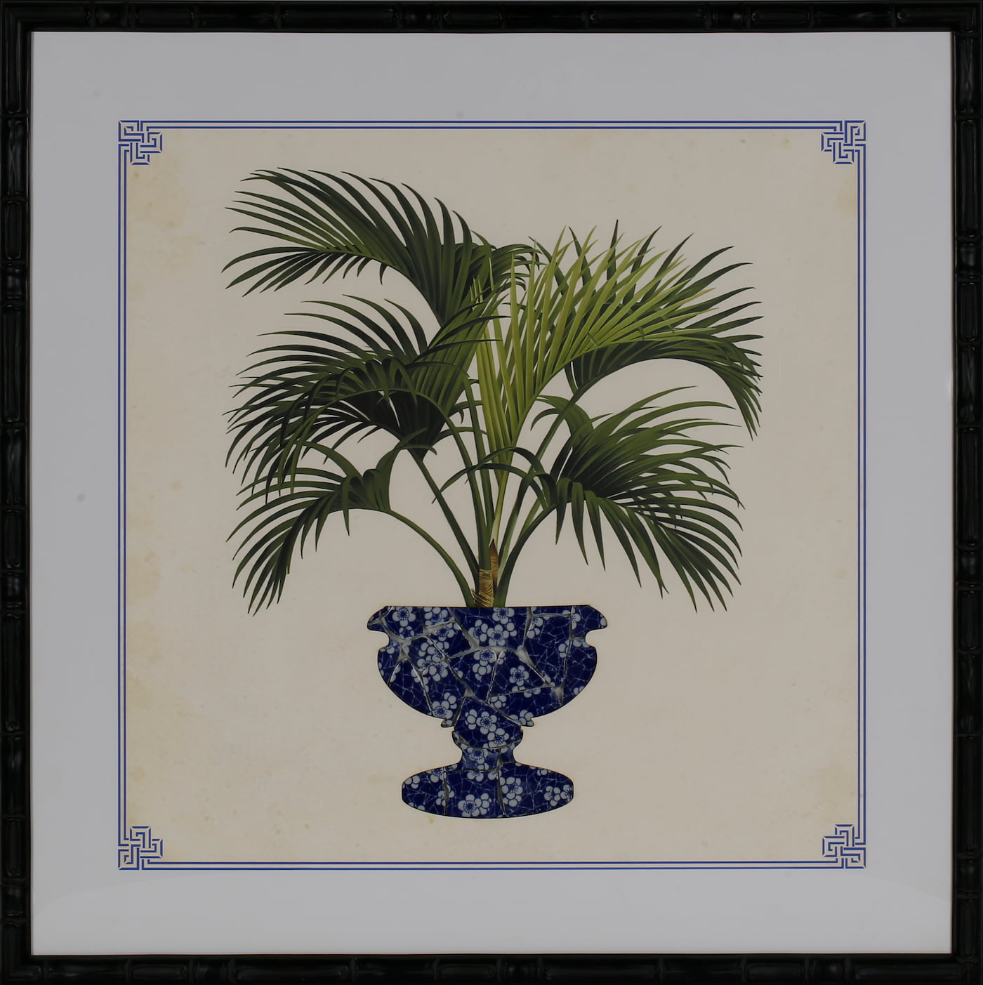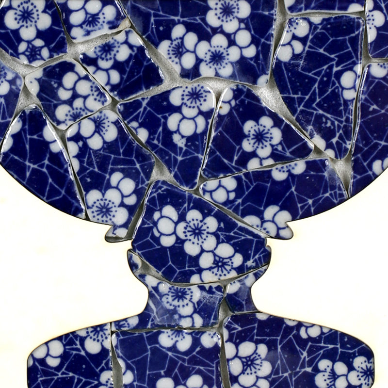 Product craftsmanship: MDF backboard, printed artwork center, flowerpot pattern made with spliced blue and white porcelain pieces