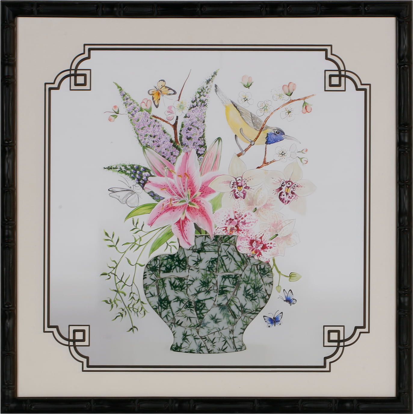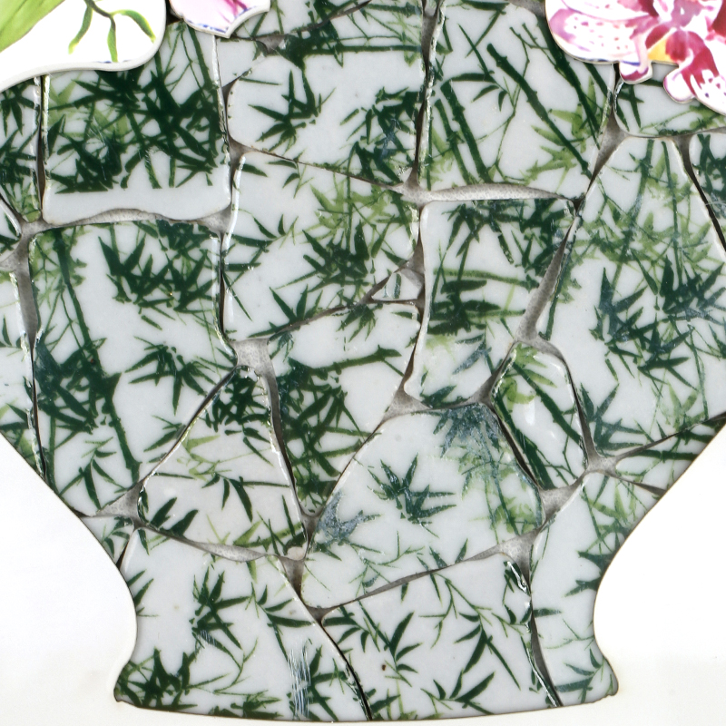Product craftsmanship: MDF backboard, printed artwork center, vase pattern made with spliced blue and white porcelain pieces