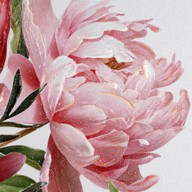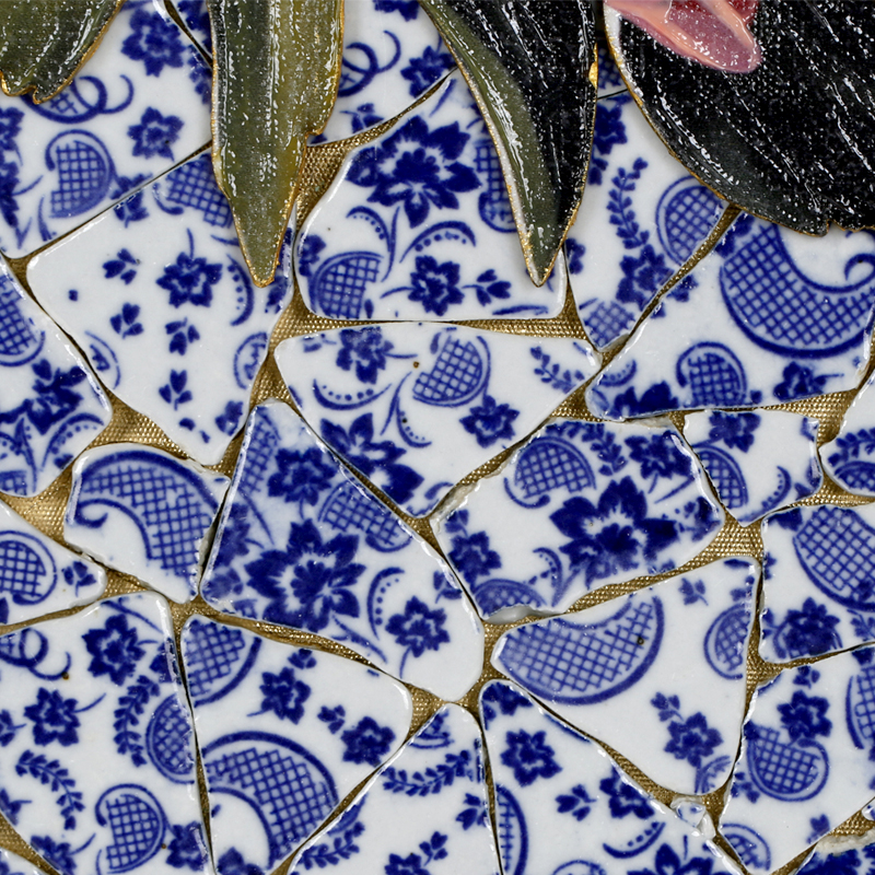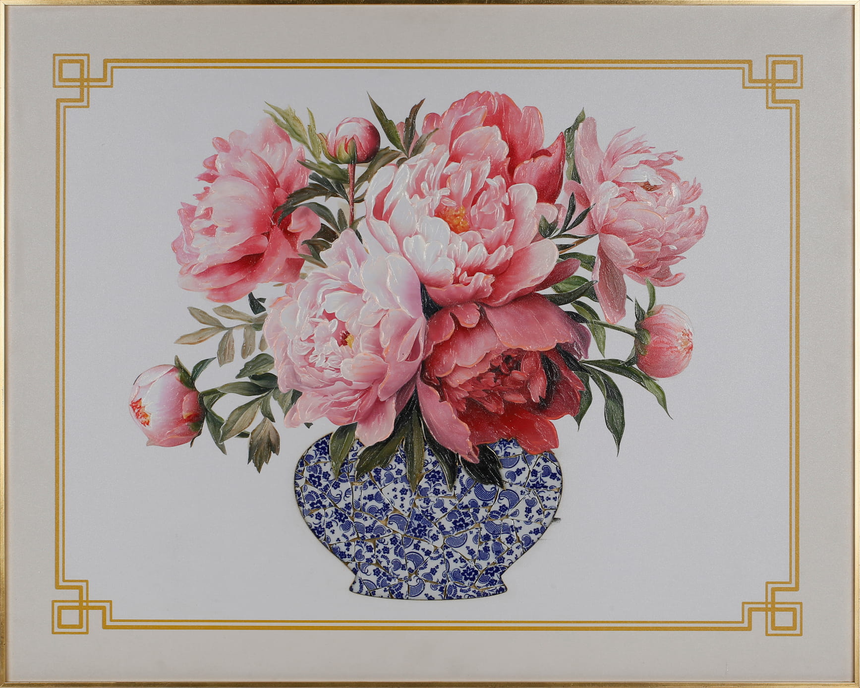 Product craftsmanship: MDF backboard, oil canvas base, pattern with hand-painted texture, vase pattern made with spliced blue and white porcelain pieces