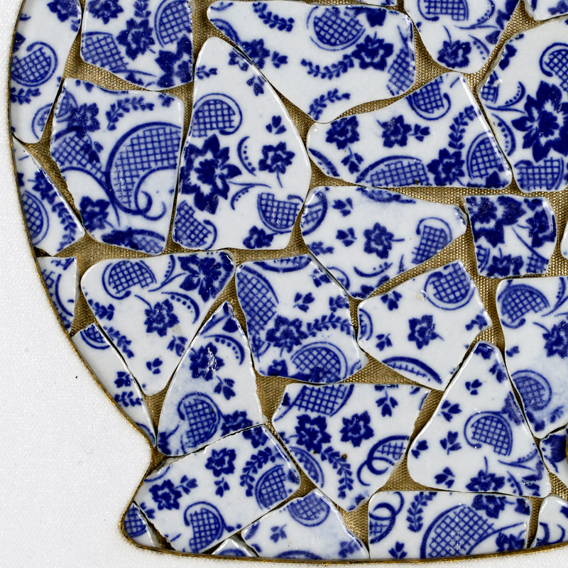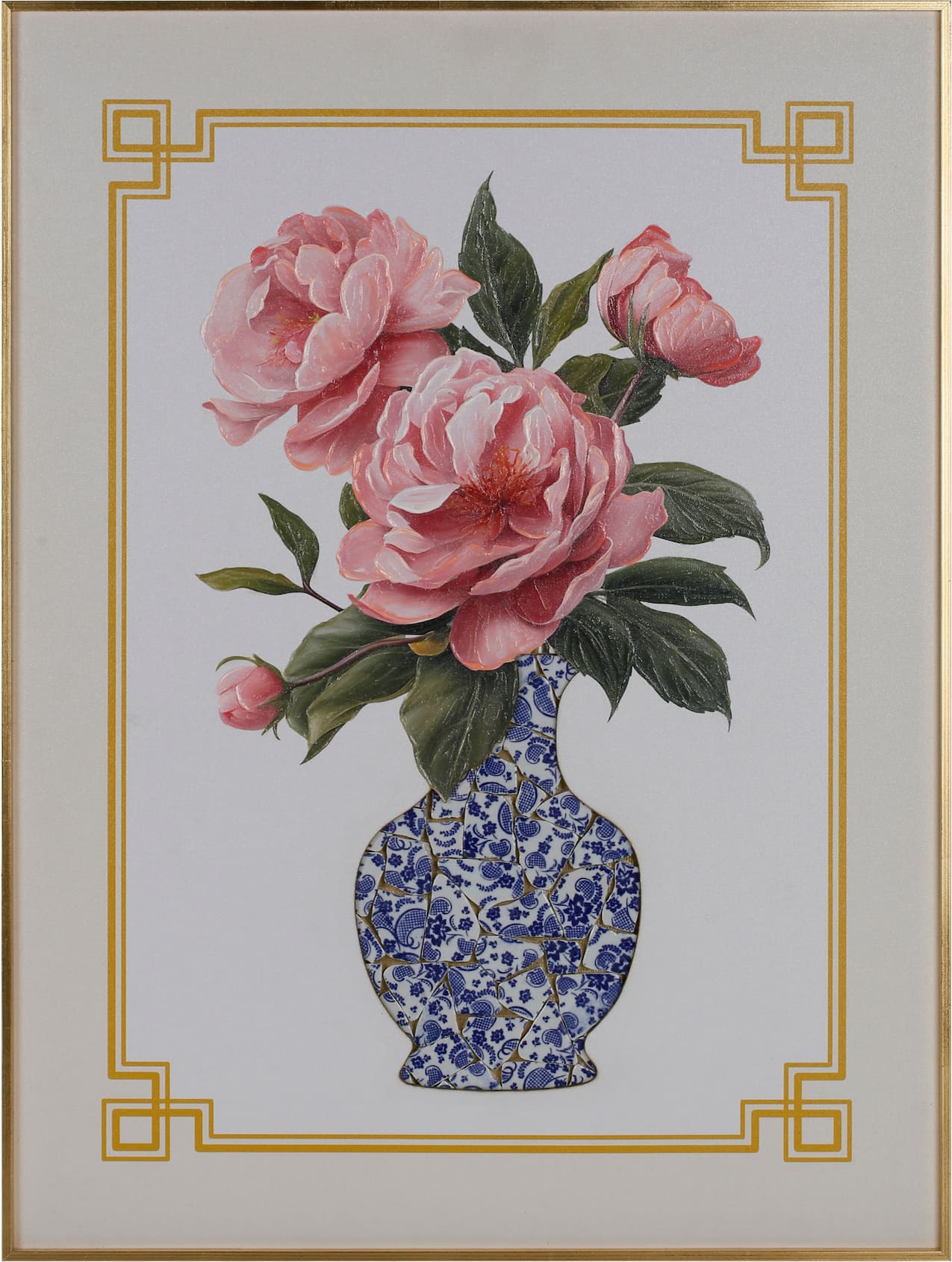 Product craftsmanship: MDF backboard, oil canvas base, pattern with hand-painted texture, vase pattern made with spliced blue and white porcelain pieces