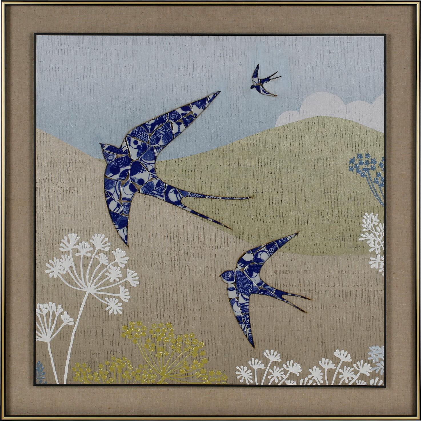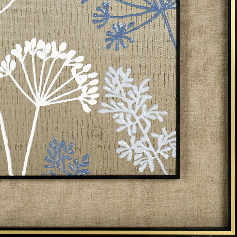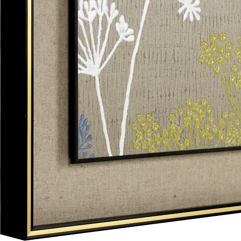 - Product Craftsmanship Product craftsmanship: MDF backboard, double-layer mounting with linen as the base layer, artwork center featuring hand-painted texture with a relief effect, bird pattern made with spliced blue and white porcelain pieces