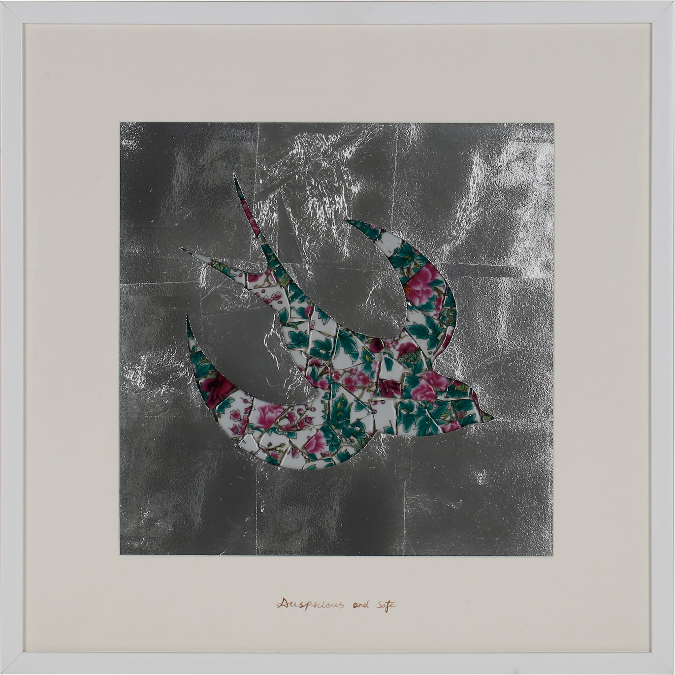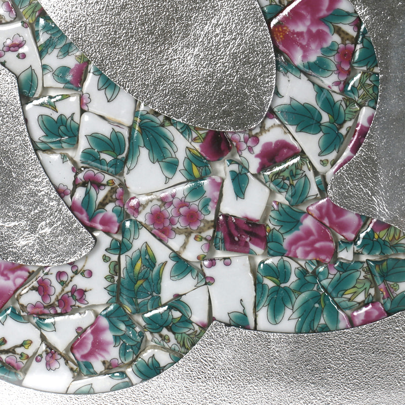Product craftsmanship: MDF backboard, silver leaf background, bird pattern made with spliced blue and white porcelain pieces