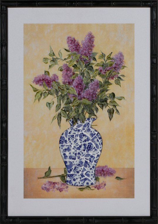 Product craftsmanship: MDF backboard, oil canvas base, pattern with thick hand-painted texture, vase pattern made with spliced blue and white porcelain pieces