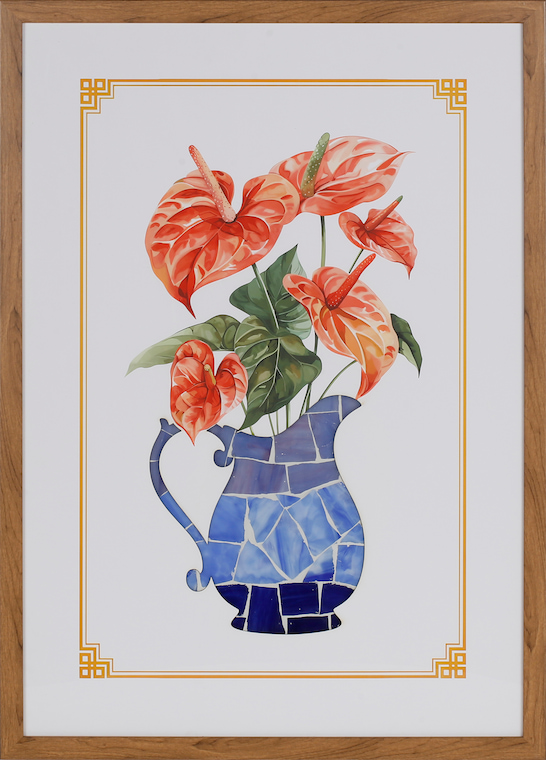 Product craftsmanship: MDF backboard, printed artwork center, vase pattern made with spliced acrylic pieces