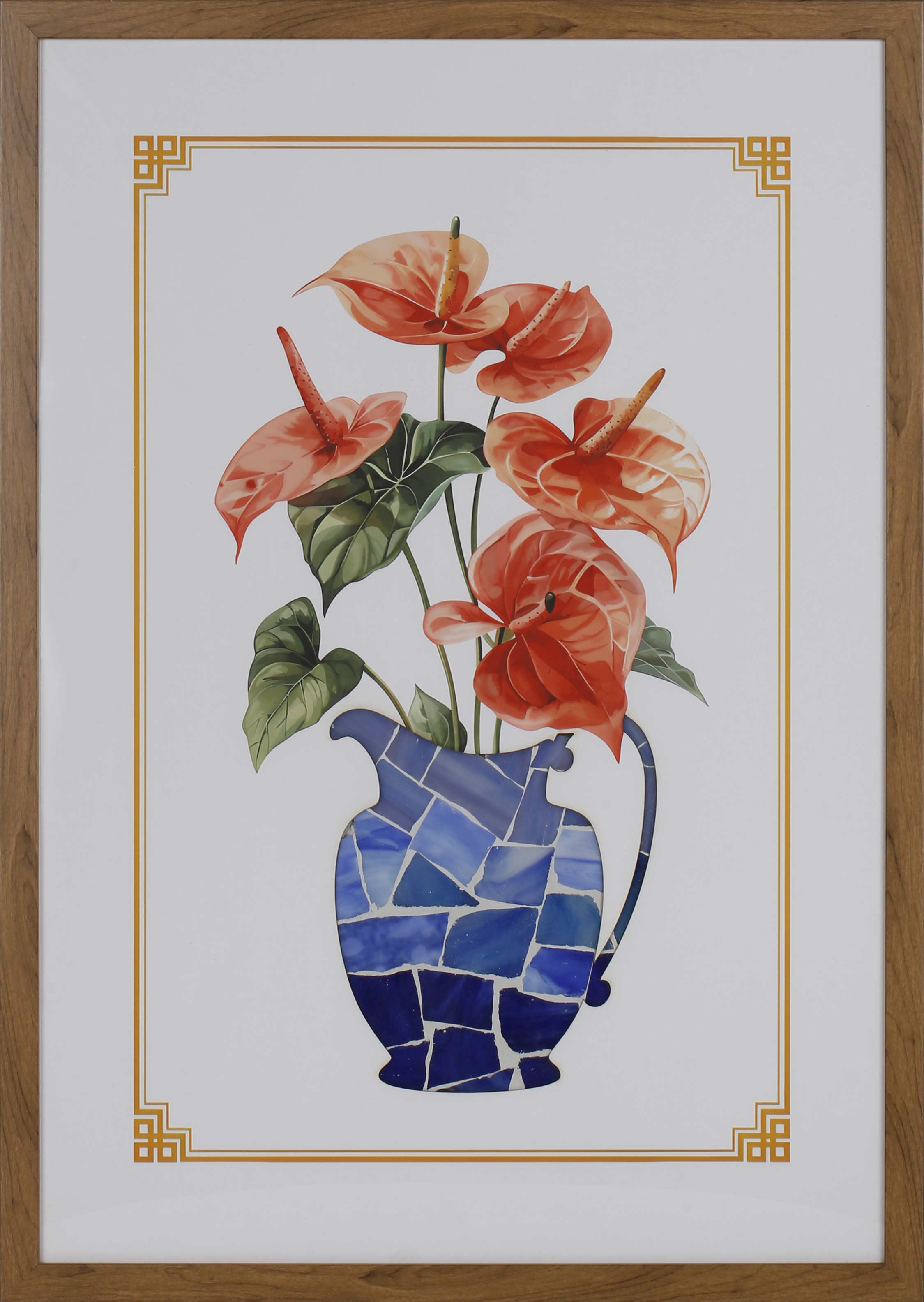 Product craftsmanship: MDF backboard, printed artwork center, vase pattern made with spliced acrylic pieces