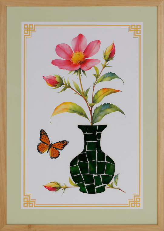 Product craftsmanship: MDF backboard, printed artwork center, vase pattern made with spliced acrylic pieces
