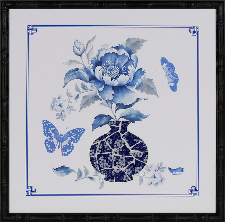Product craftsmanship: MDF backboard, printed artwork center, vase pattern made with spliced blue and white porcelain pieces