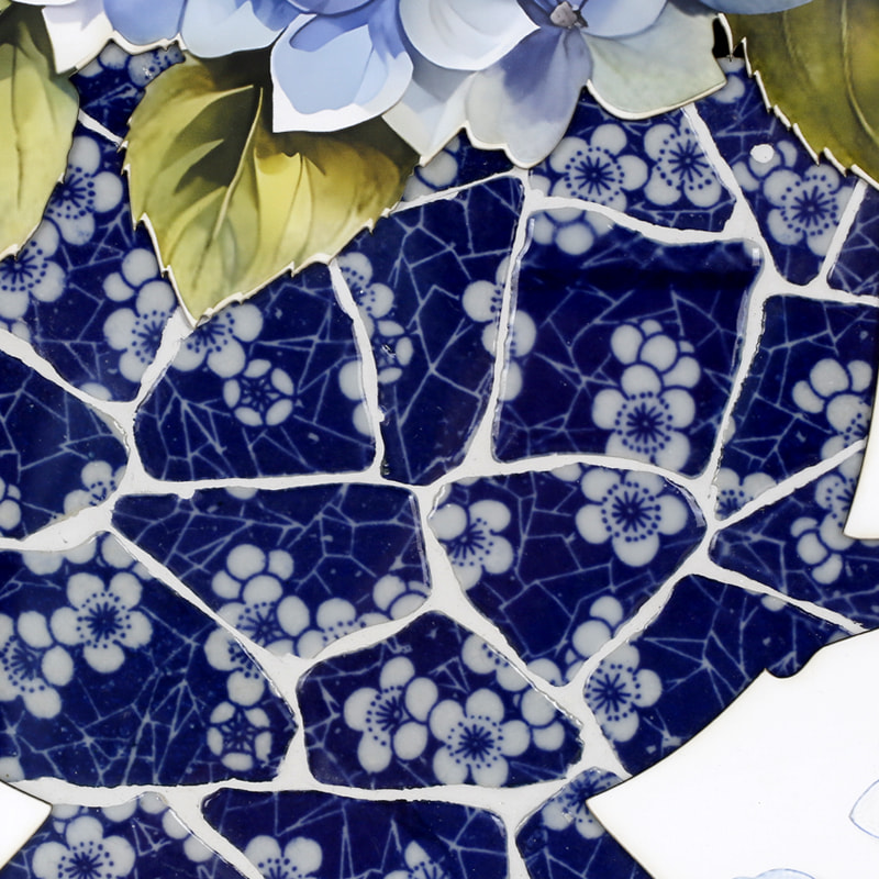 Product craftsmanship: MDF backboard, printed artwork center, vase pattern made with spliced blue and white porcelain pieces