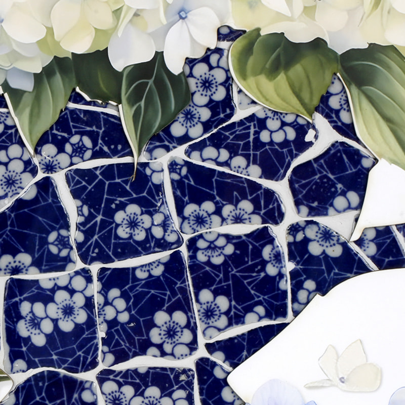 Product craftsmanship: MDF backboard, printed artwork center, vase pattern made with spliced blue and white porcelain pieces