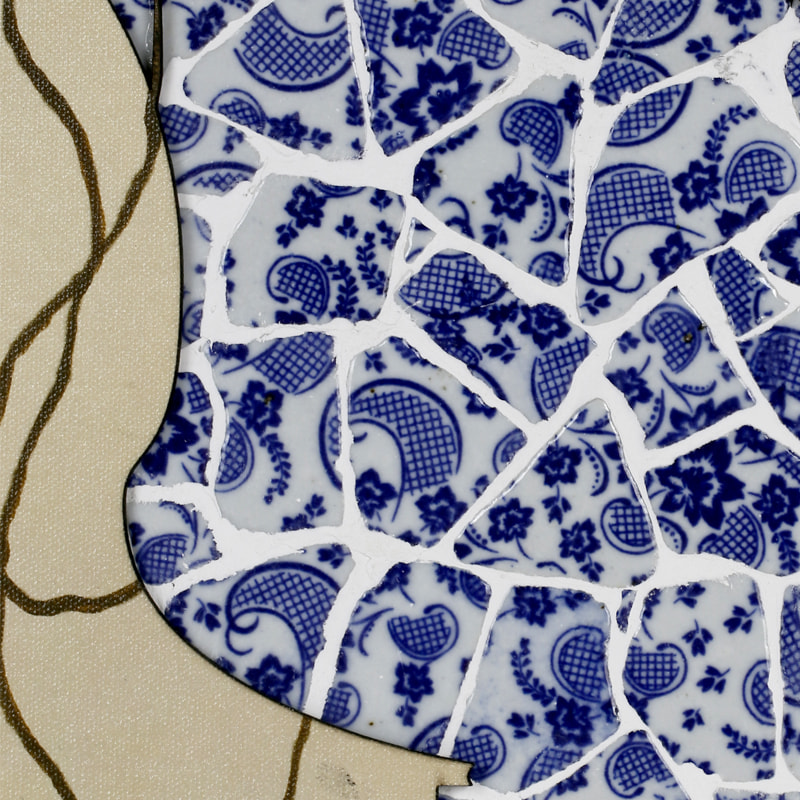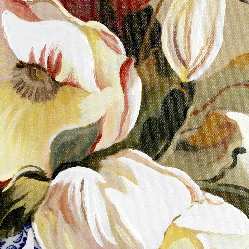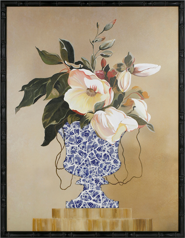 Product craftsmanship: MDF backboard, oil canvas base, pattern with thick hand-painted texture, vase pattern made with spliced blue and white porcelain pieces
