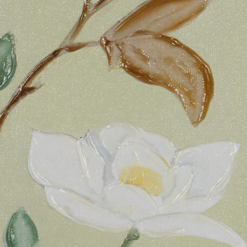 Product craftsmanship: MDF backboard, oil canvas base, pattern with thick hand-painted texture, vase pattern made with spliced blue and white porcelain pieces