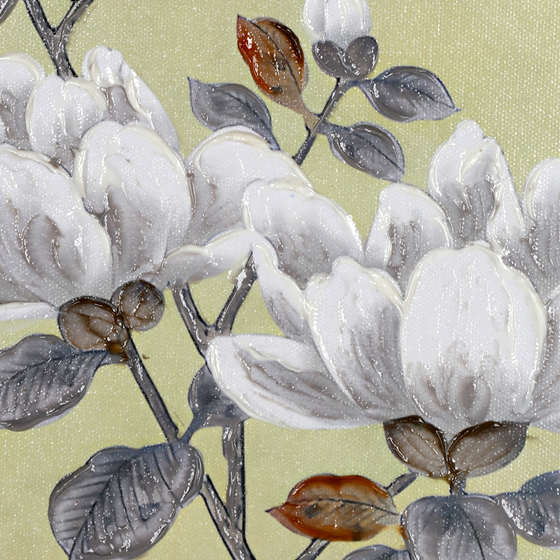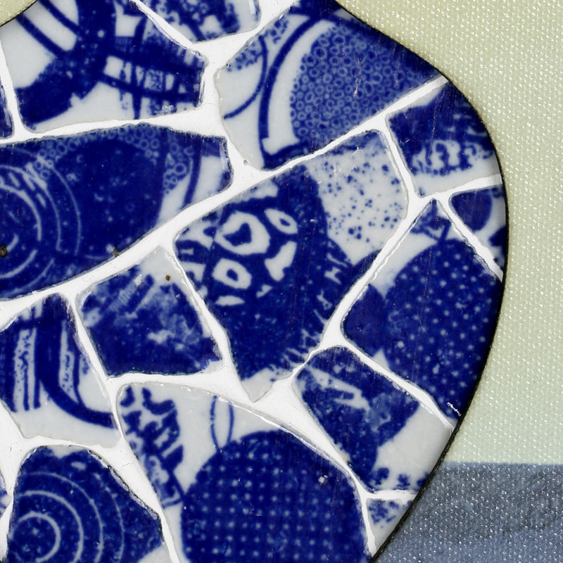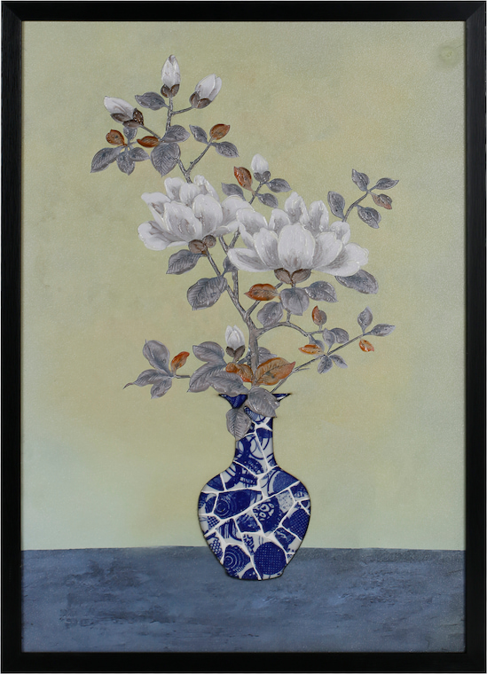 Product craftsmanship: MDF backboard, oil canvas base, pattern with thick hand-painted texture, vase pattern made with spliced blue and white porcelain pieces