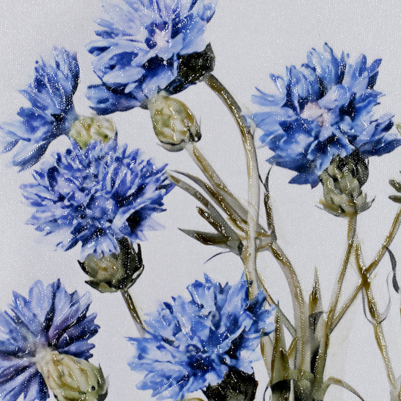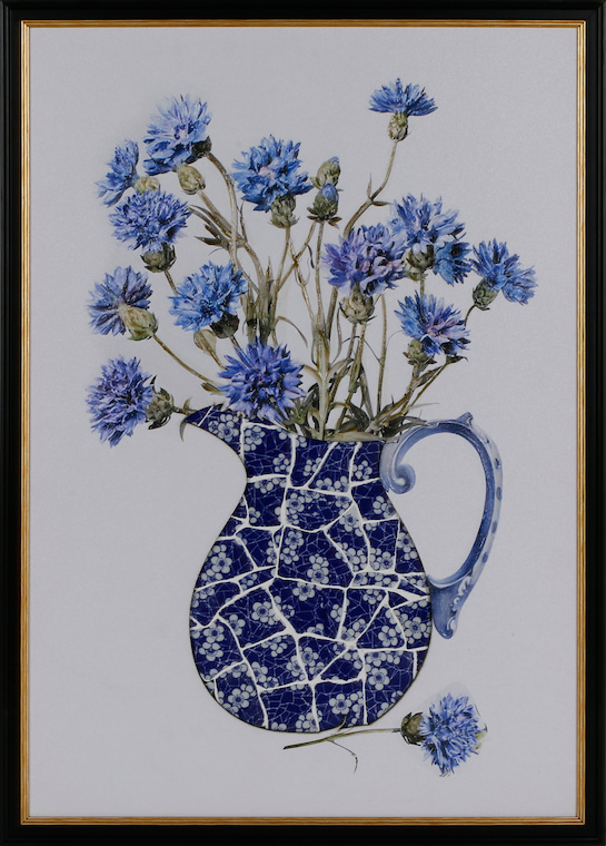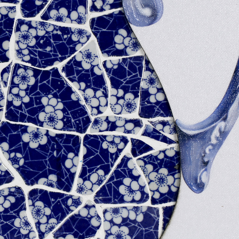 Product craftsmanship: MDF backboard, oil canvas base, pattern with thick hand-painted texture, vase pattern made with spliced blue and white porcelain pieces