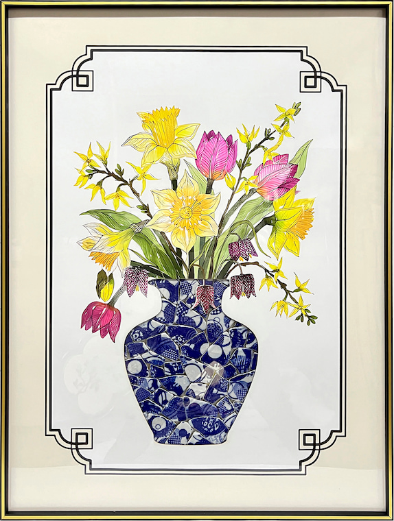 Product craftsmanship: MDF backboard, double-layer mounting, printed artwork center, vase pattern made with spliced blue and white porcelain pieces