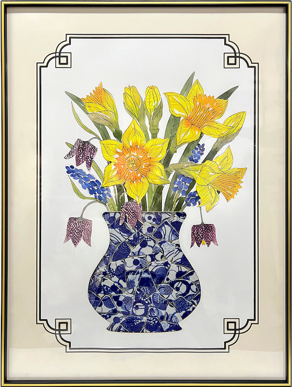 Product craftsmanship: MDF backboard, double-layer mounting, printed artwork center, vase pattern made with spliced blue and white porcelain pieces