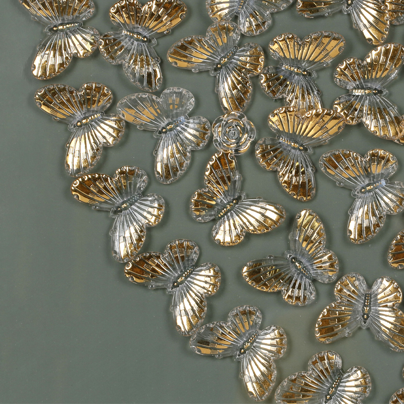 MDF backboard, acrylic butterflies with gold electroplating, Front acrylic glass panel