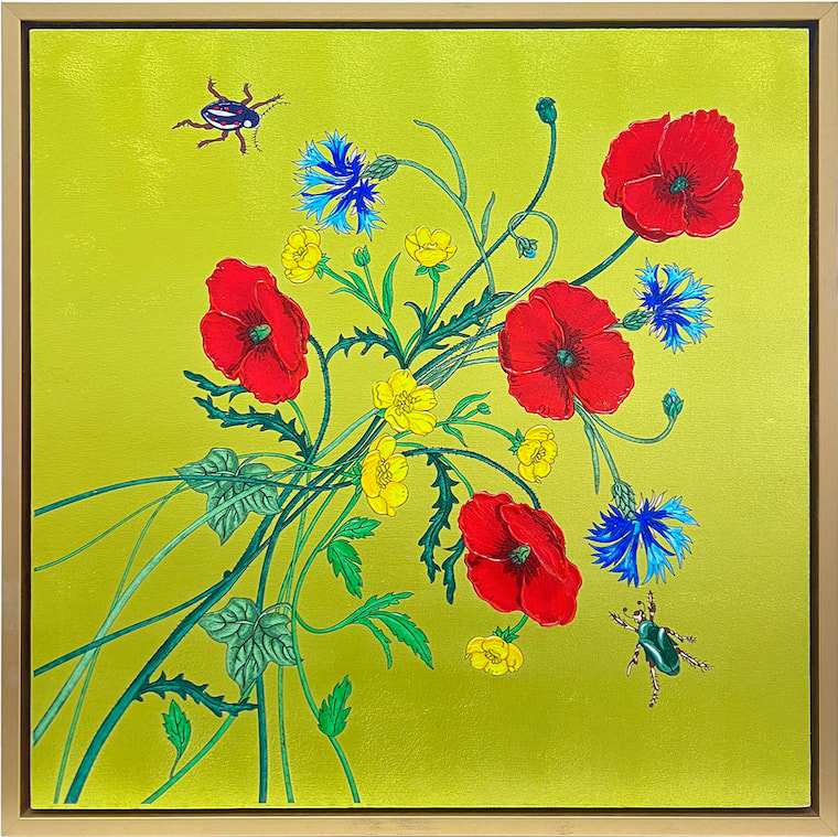 Product craftsmanship: MDF backing board, gold leaf canvas base, pattern with hand-painted texture