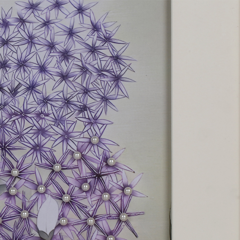 Product Craftsmanship: MDF backboard, printed silk fabric on the canvas, partial embroidery with sequins, Front acrylic glass panel