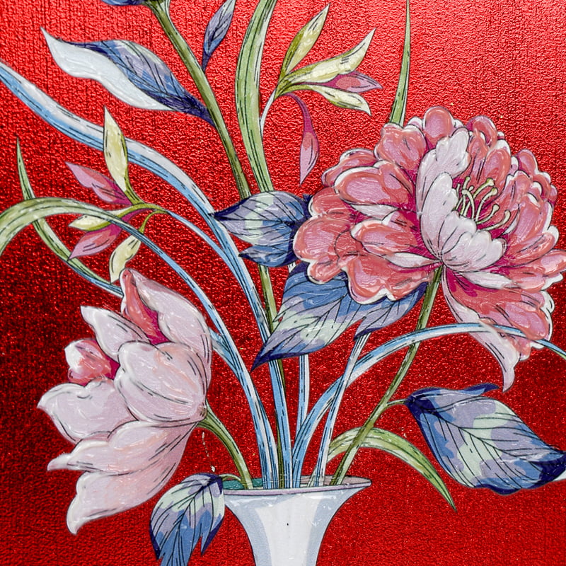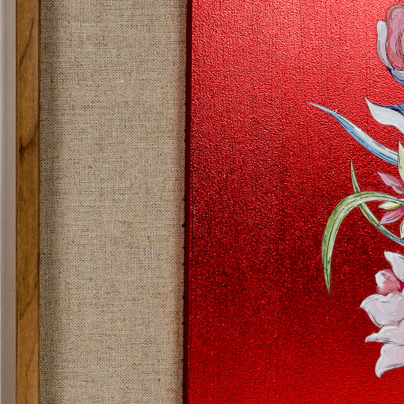 Product Craftsmanship: MDF backboard, linen baseboard, double mounting, Red gold foil base, hand-painted texture artwork