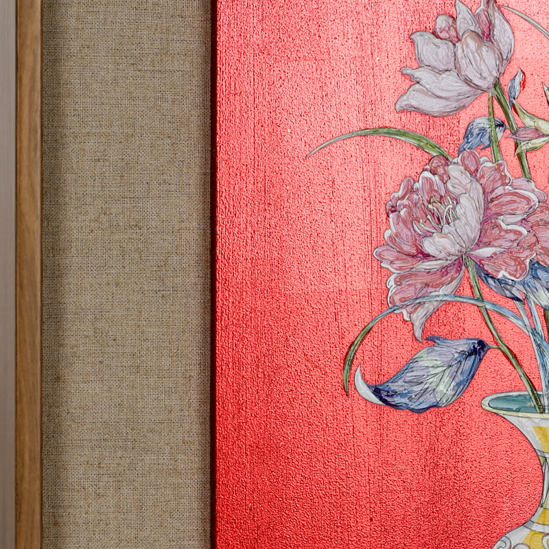Product Craftsmanship: MDF backboard, linen baseboard, double mounting, Red gold foil base, hand-painted texture artwork