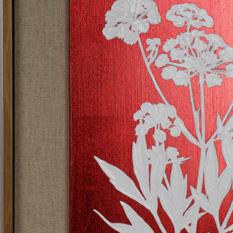 Product Craftsmanship: MDF backboard, linen baseboard, double mounting, Red gold foil base, hand-painted texture artwork