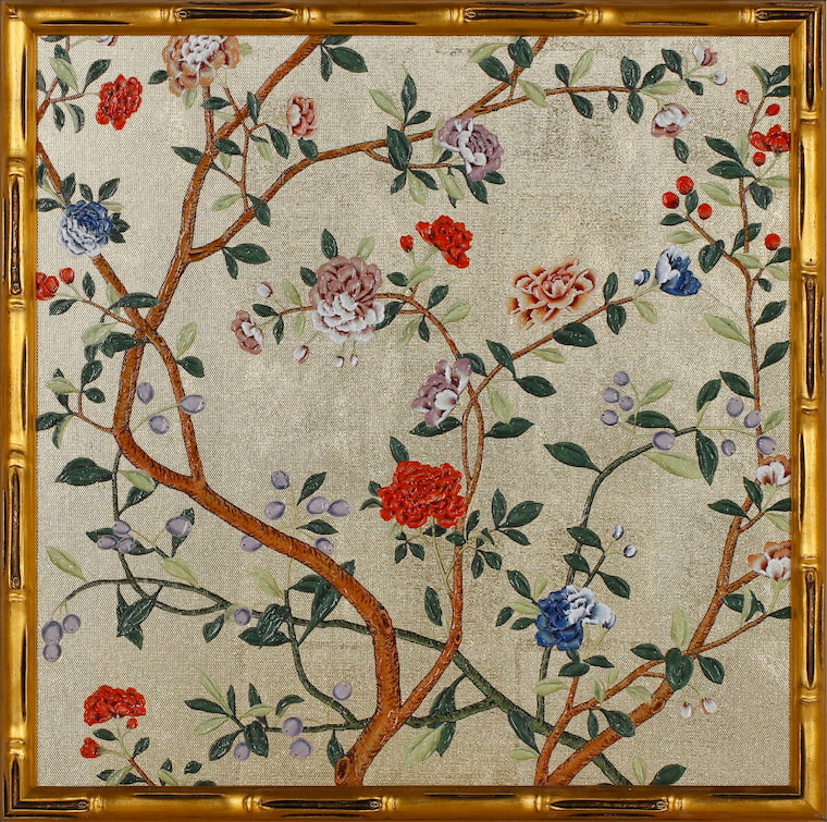 Product craftsmanship: MDF backing board, gold leaf canvas base, pattern with hand-painted texture