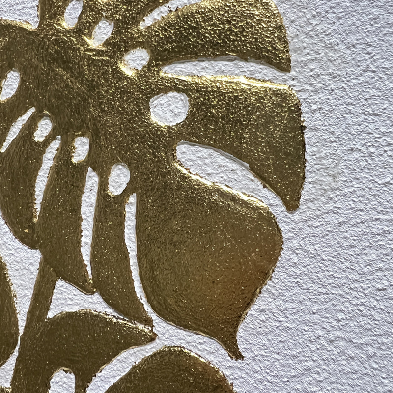 Product craftsmanship: MDF backing board, sandstone baseboard, Patterned gold foil, hand-painted textured artwork