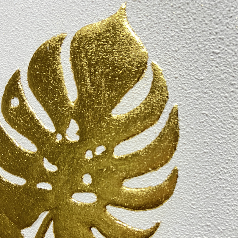 Product craftsmanship: MDF backing board, sandstone baseboard, Patterned gold foil, hand-painted textured artwork
