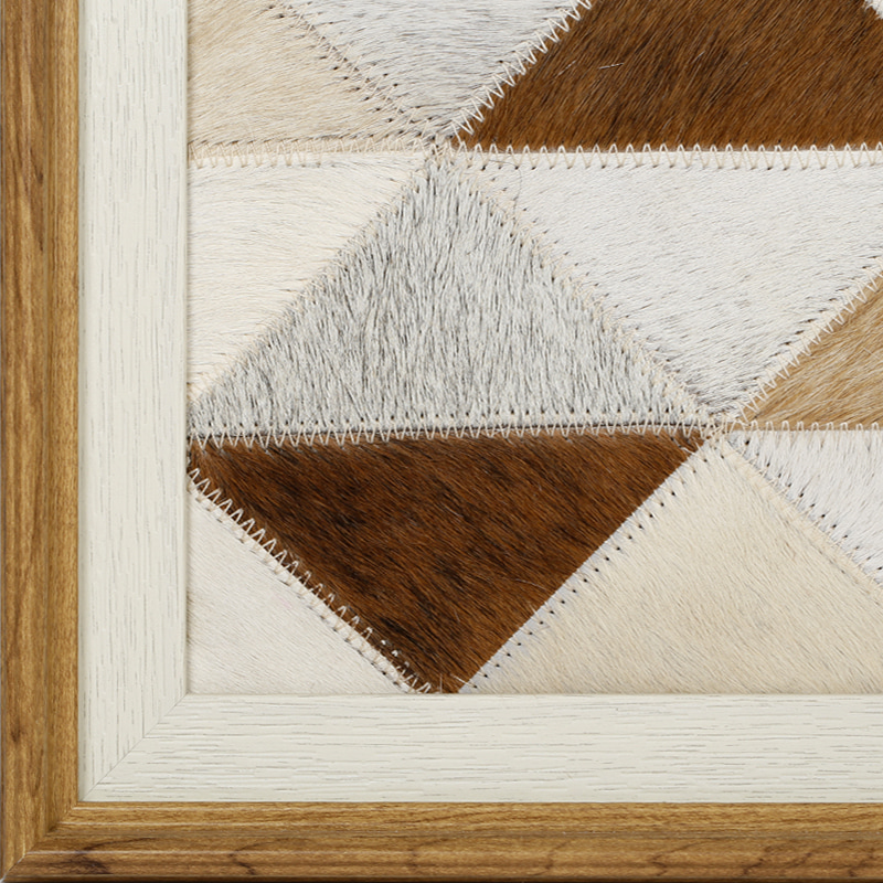 Product Craftsmanship: MDF backboard, cowhide artwork center, cowhide stitched patchwork pattern
