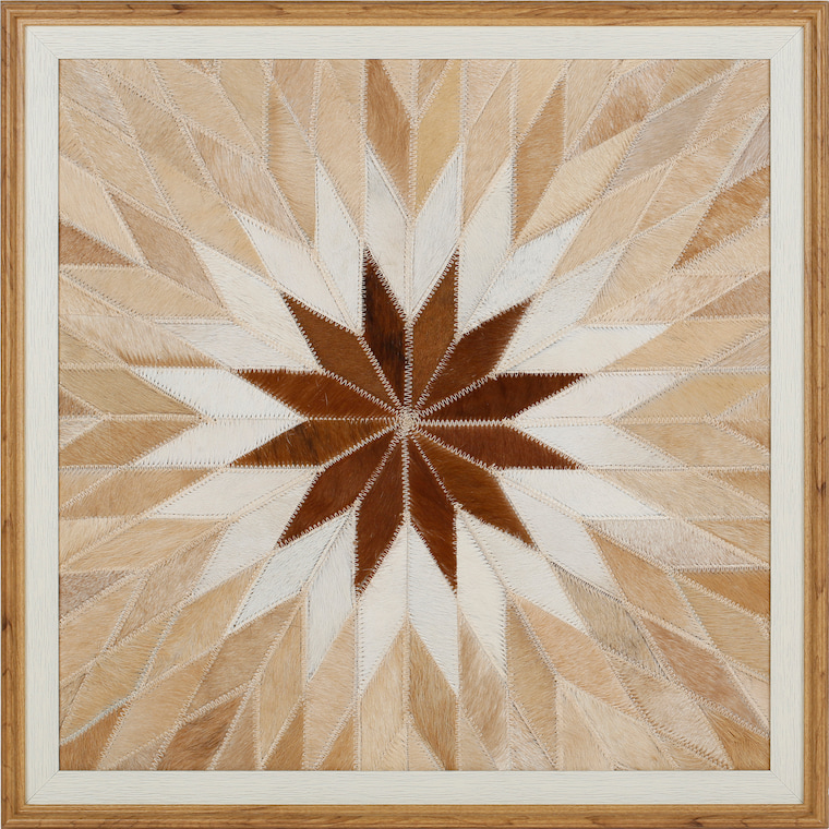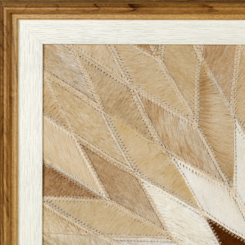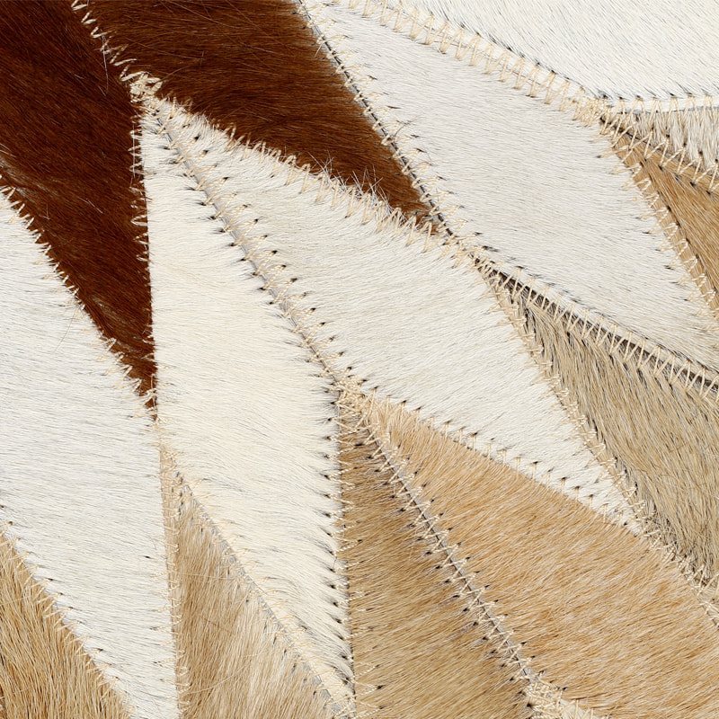 Product Craftsmanship: MDF backboard, cowhide artwork center, cowhide stitched patchwork pattern