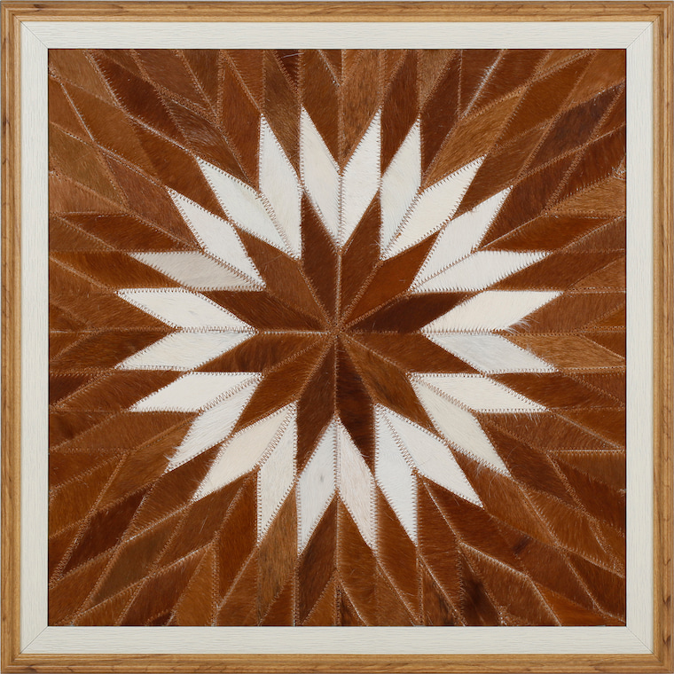 Product Craftsmanship: MDF backboard, cowhide artwork center, cowhide stitched patchwork pattern
