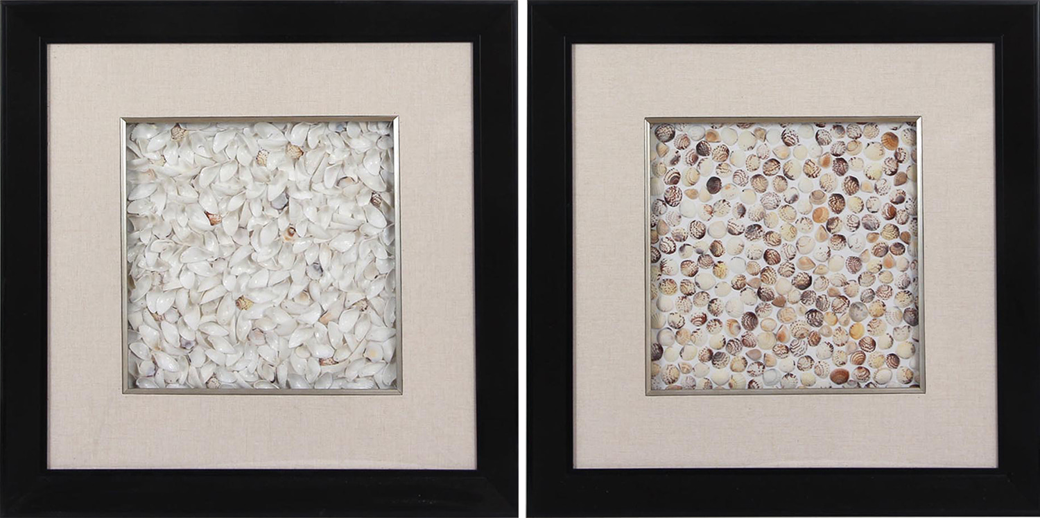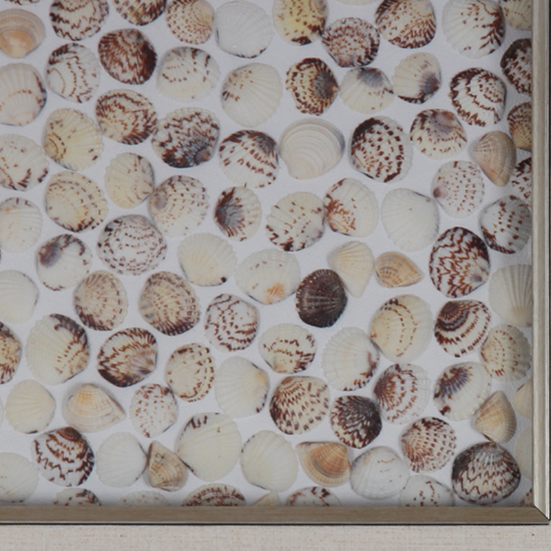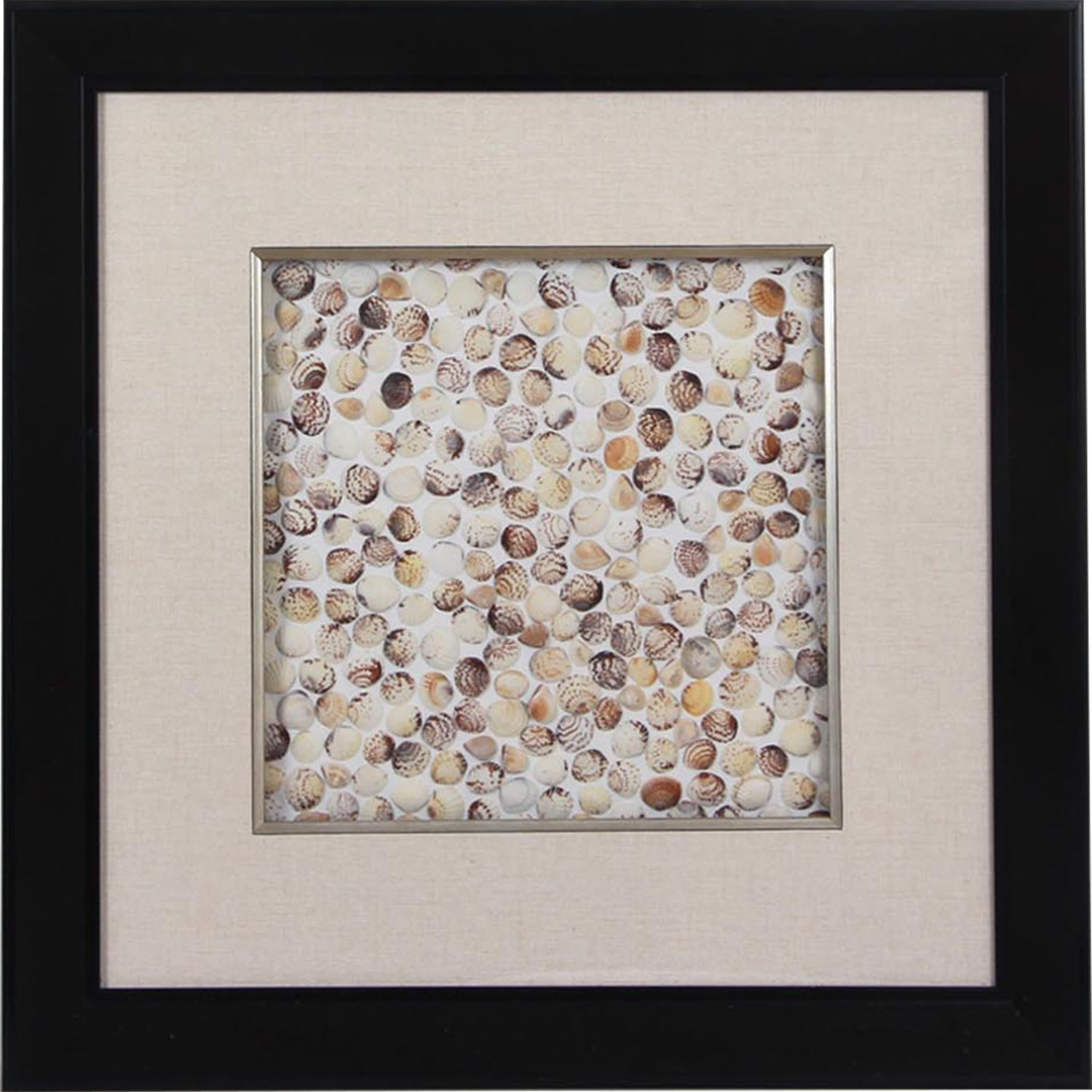 Product craftsmanship: MDF backboard, artwork center adorned with natural shell inlays, front covered with acrylic panel