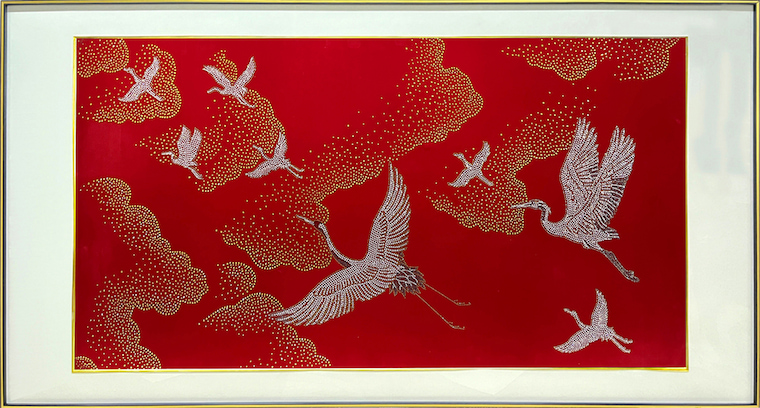 - Product Craftsmanship Prosduct Craftsmanship: MDF backboard, velvet fabric base, rhinestone pattern, heat-transfer rhinestone design,Double-layer framing.