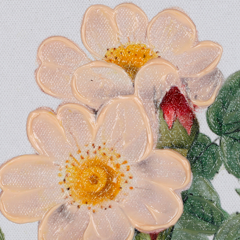Product craftsmanship: MDF backboard, sandstone base, artwork center with thick hand-painted texture