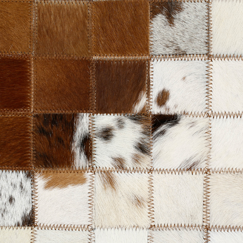 - Product Craftsmanship MDF backboard, cowhide artwork center, cowhide stitched patchwork pattern