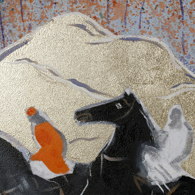 Product craftsmanship: MDF backing board, partial pattern gilded with gold leaf, hand-painted textured artwork.