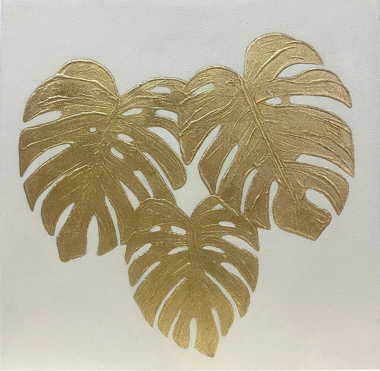 Product craftsmanship: MDF backing board, partial pattern gilded with gold leaf, hand-painted textured artwork.