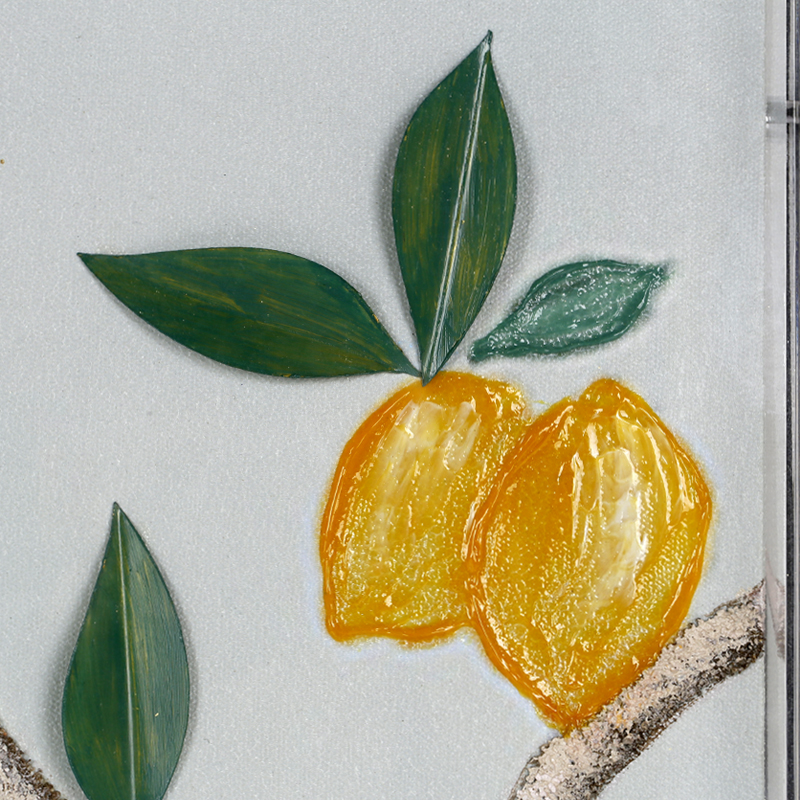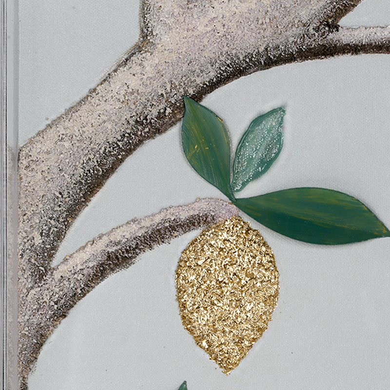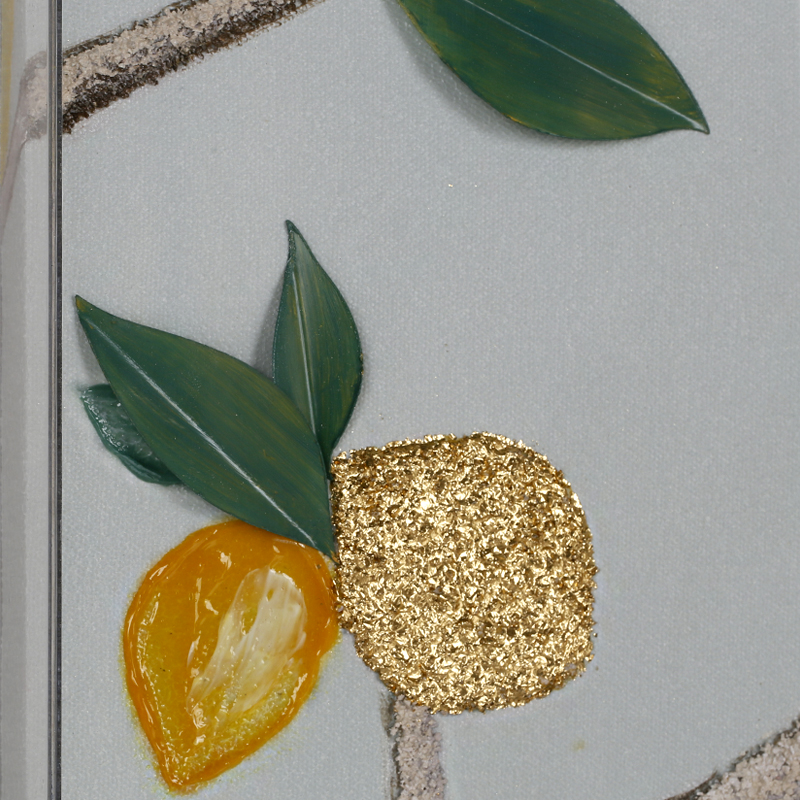 - Product Craftsmanship Product craftsmanship: MDF backboard, pattern with thick hand-painted texture and relief effect, partially gilded with gold leaf, covered with an acrylic panel