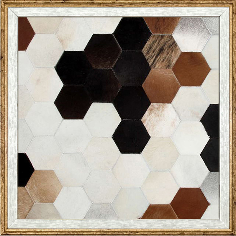 Product Craftsmanship: MDF backboard, cowhide artwork center, cowhide stitched patchwork pattern