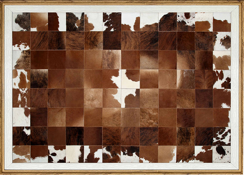 Product Craftsmanship: MDF backboard, cowhide artwork center, cowhide stitched patchwork pattern