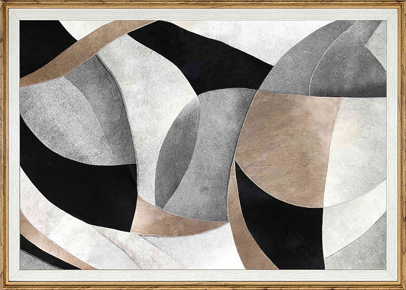 Product Craftsmanship: MDF backboard, cowhide artwork center, cowhide stitched patchwork pattern