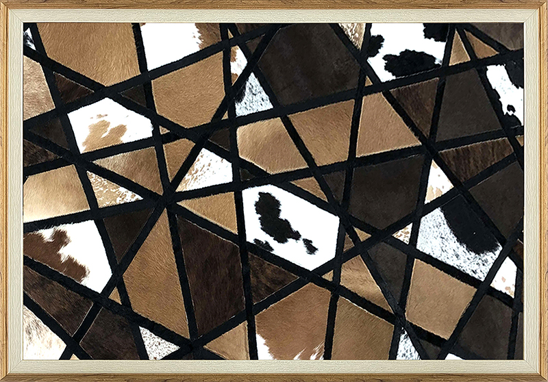 Product Craftsmanship: MDF backboard, cowhide artwork center, cowhide stitched patchwork pattern