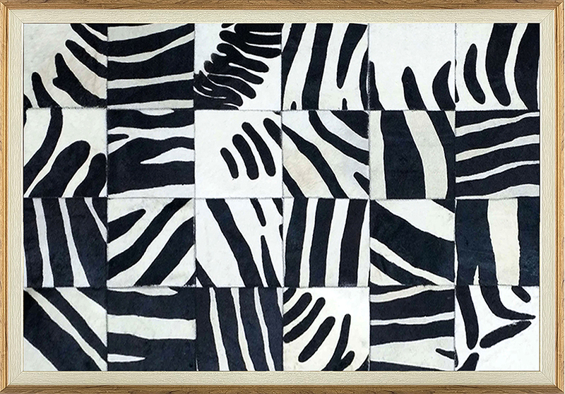 Product Craftsmanship: MDF backboard, cowhide artwork center, cowhide stitched patchwork pattern