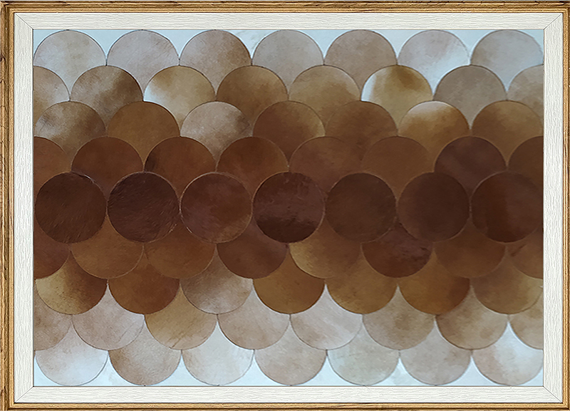 Product Craftsmanship: MDF backboard, cowhide artwork center, cowhide stitched patchwork pattern