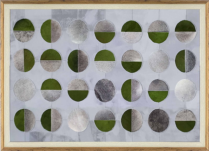 Product Craftsmanship: MDF backboard, cowhide artwork center, cowhide stitched patchwork pattern